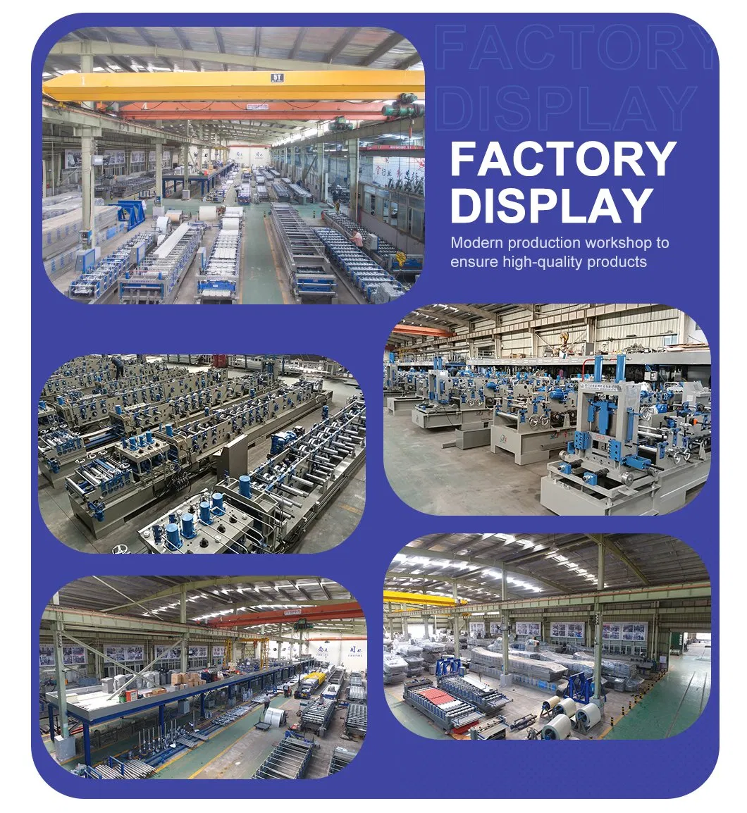 Totius longitudinis productionis linea est circiter 25m. Constat e uncoiler, unitatem pascendi, fabricam aequandi, machinam pulsandi, frigoris inflexionem systematis formandi, fabricam incisam, suggestum operis operis in eo ordine. Ornata est cum statio hydraulica et scrinium electricum imperium. Unaquaeque pars certam extensionem habet dimensionem.